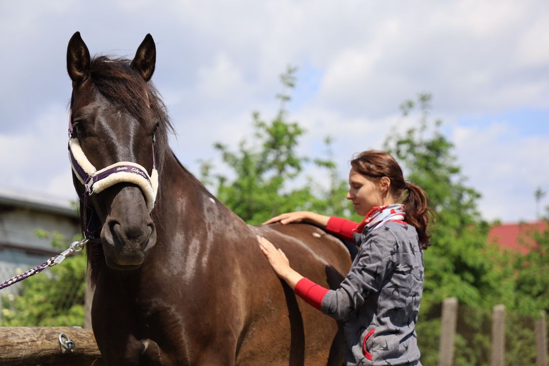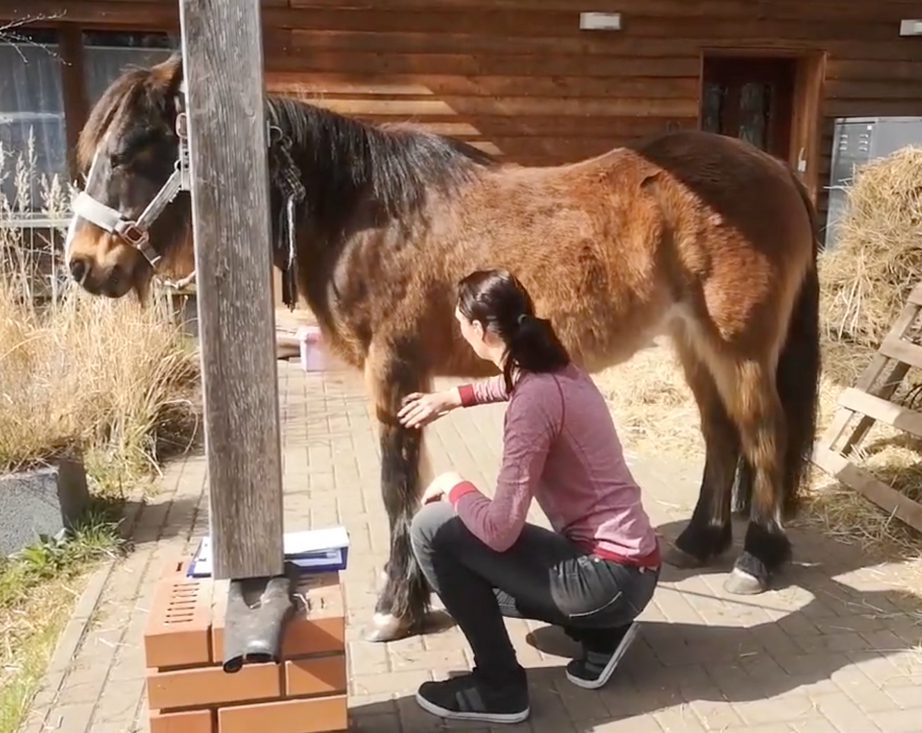 Sie nimmt sich viel Zeit und man merkt, dass sie dem Pferd wirklich helfen will.