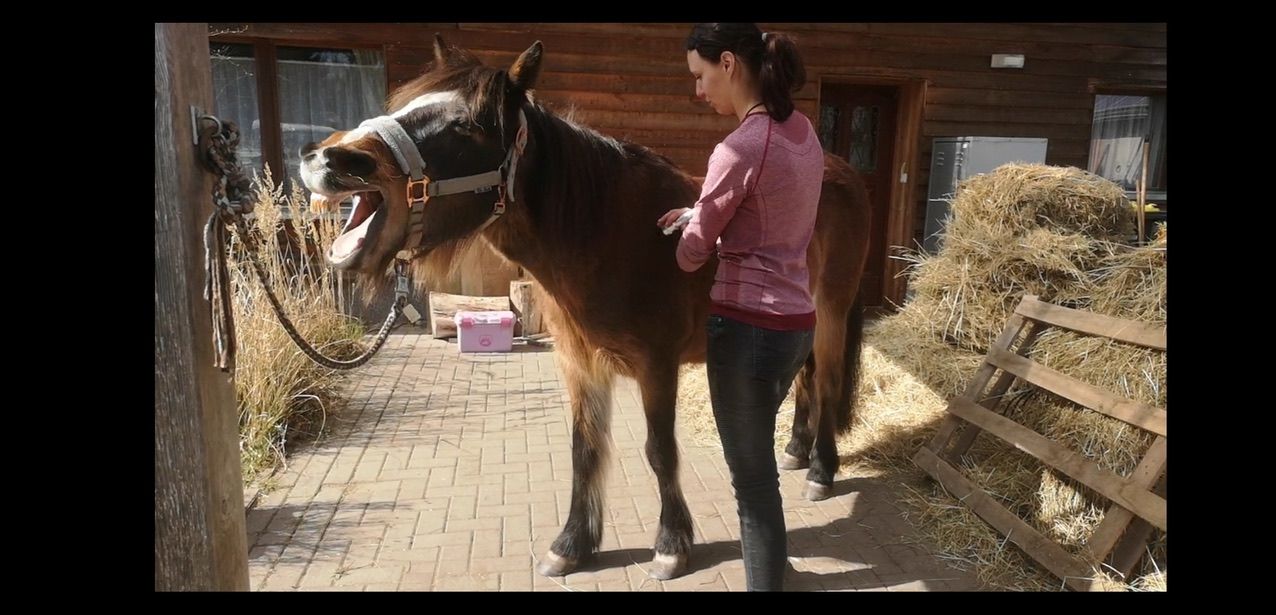 Meine Stute konnte gut bei ihr entspannen und zeigte jedes Mal Reaktionen, die ich auch aus der manuellen Osteopathie kenne (Kauen, Gähnen, sich strecken, Augen schließen usw.).